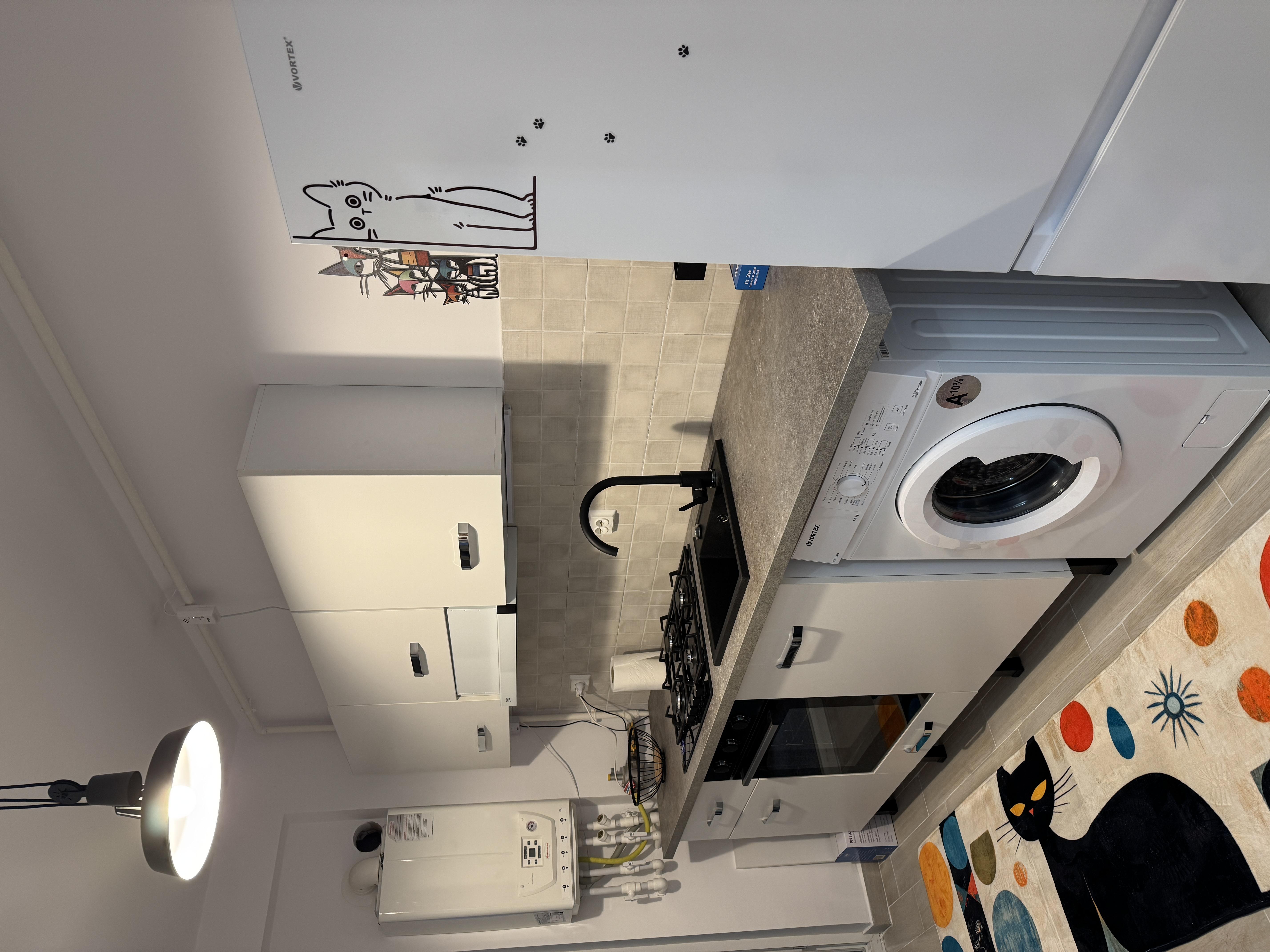 Bucatarie complet utilata: cuptor, plita, hota, frigider
