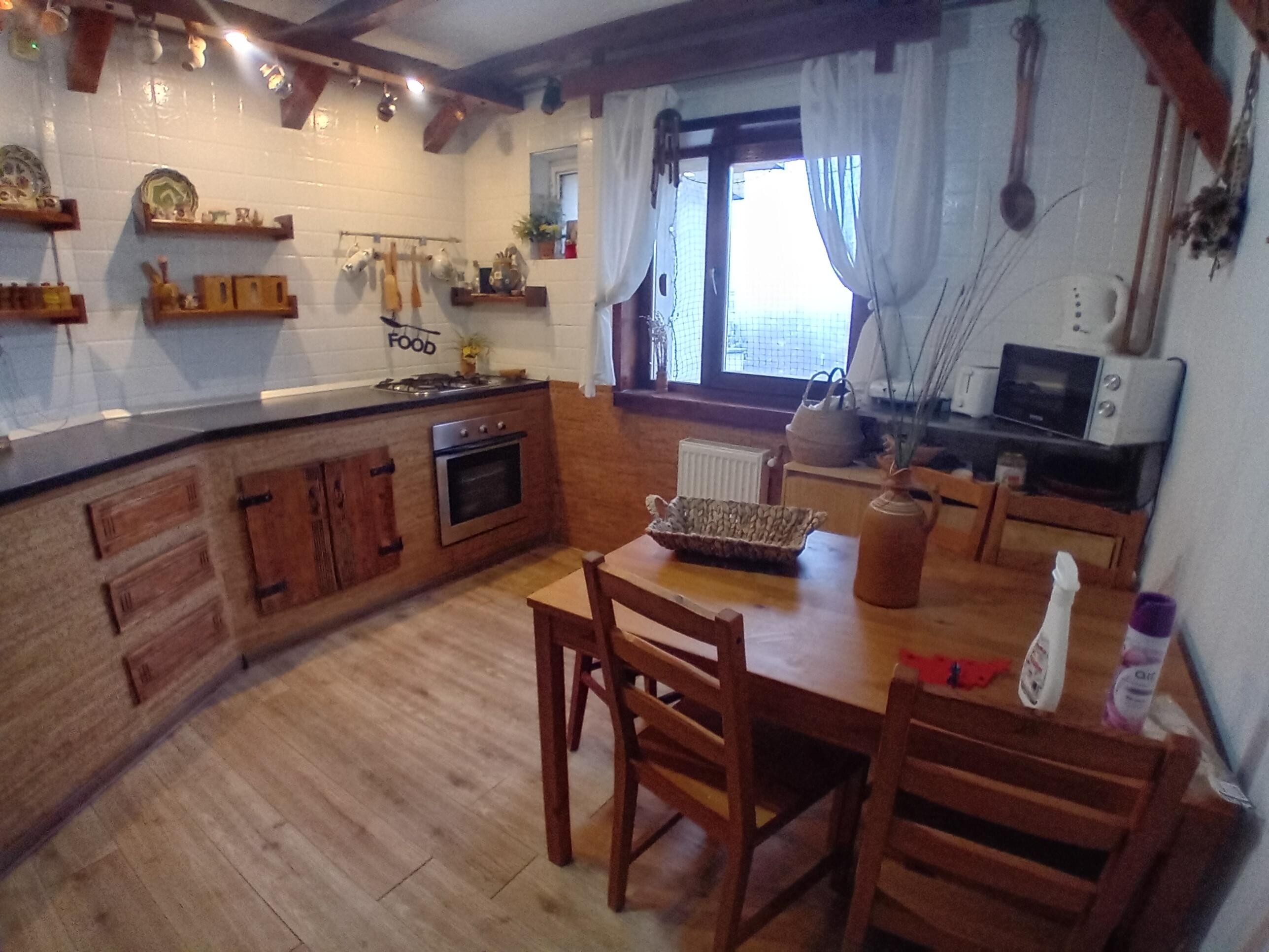 4 camere decomandate, 2 bai (1 cu dus - cabina noua si 1 cu cada, cu 2 balcoane spatioase (balconul de la sufragerie izolat, cu lemn si caramida arsa)