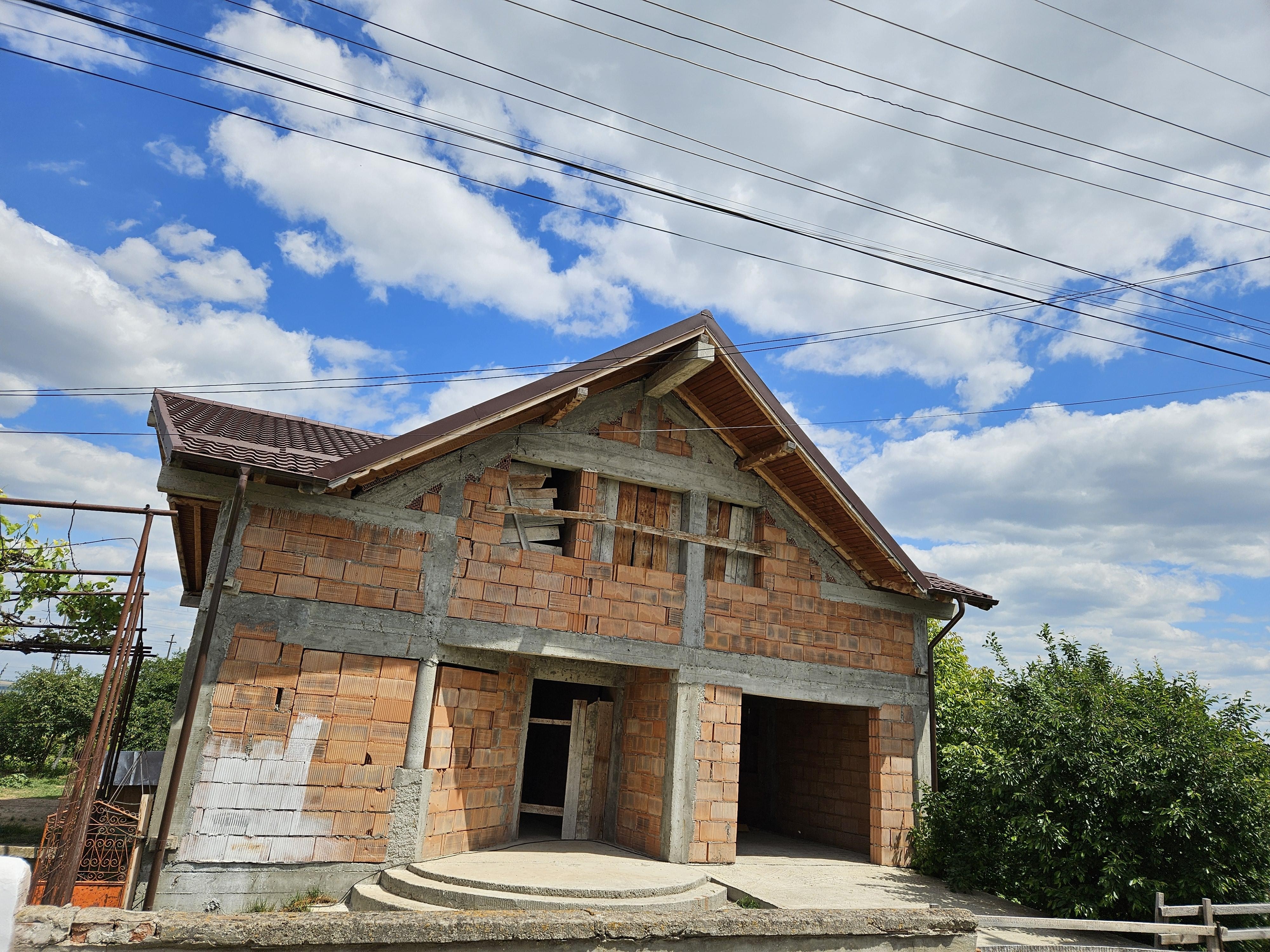 De vânzare casă la roșu în Hălăucești,judetul Iași. Construită din cărămidă ,suprafața construcției desfășurată 290mp,suprafață teren 500mp, 6 camere,living, bucătărie, 2 băi, cameră tehnică, garaj,beci,acoperiș tablă Bilka(maro mat).