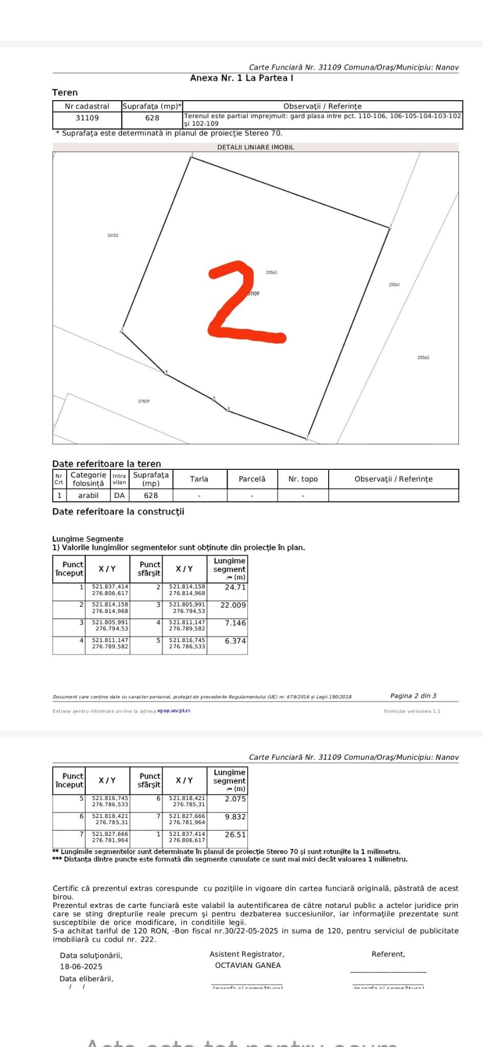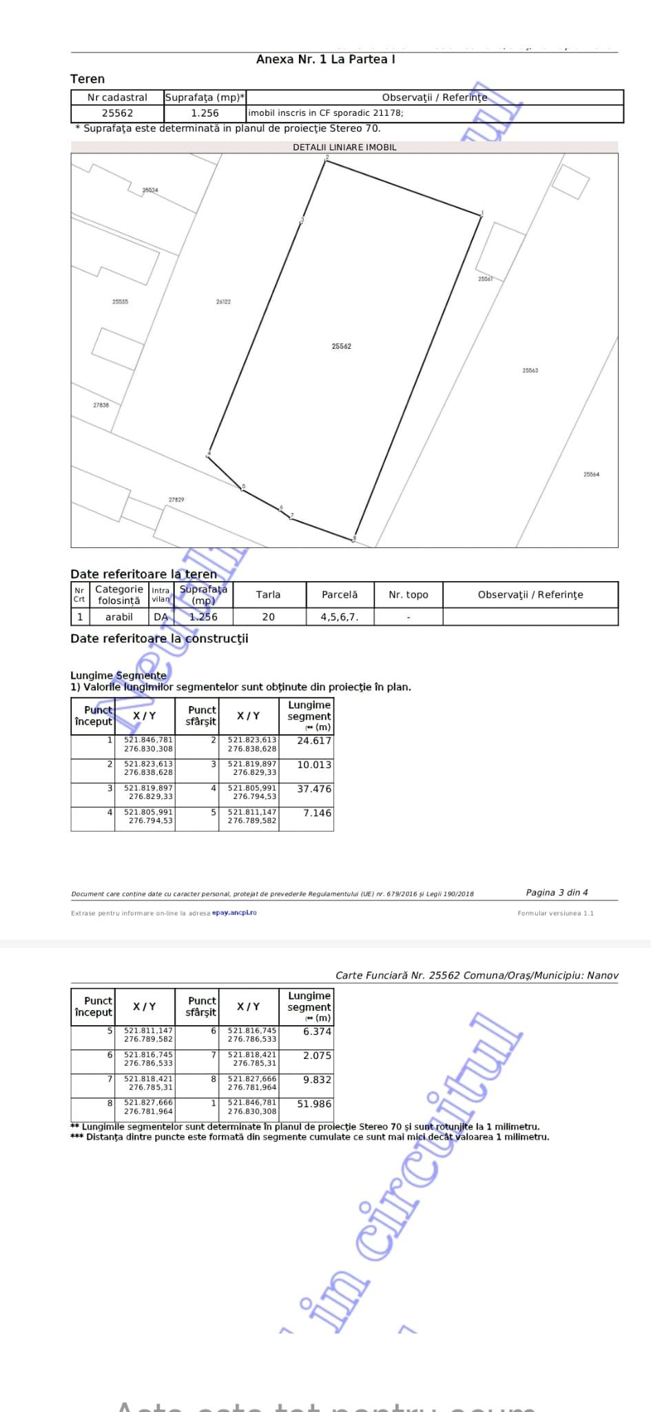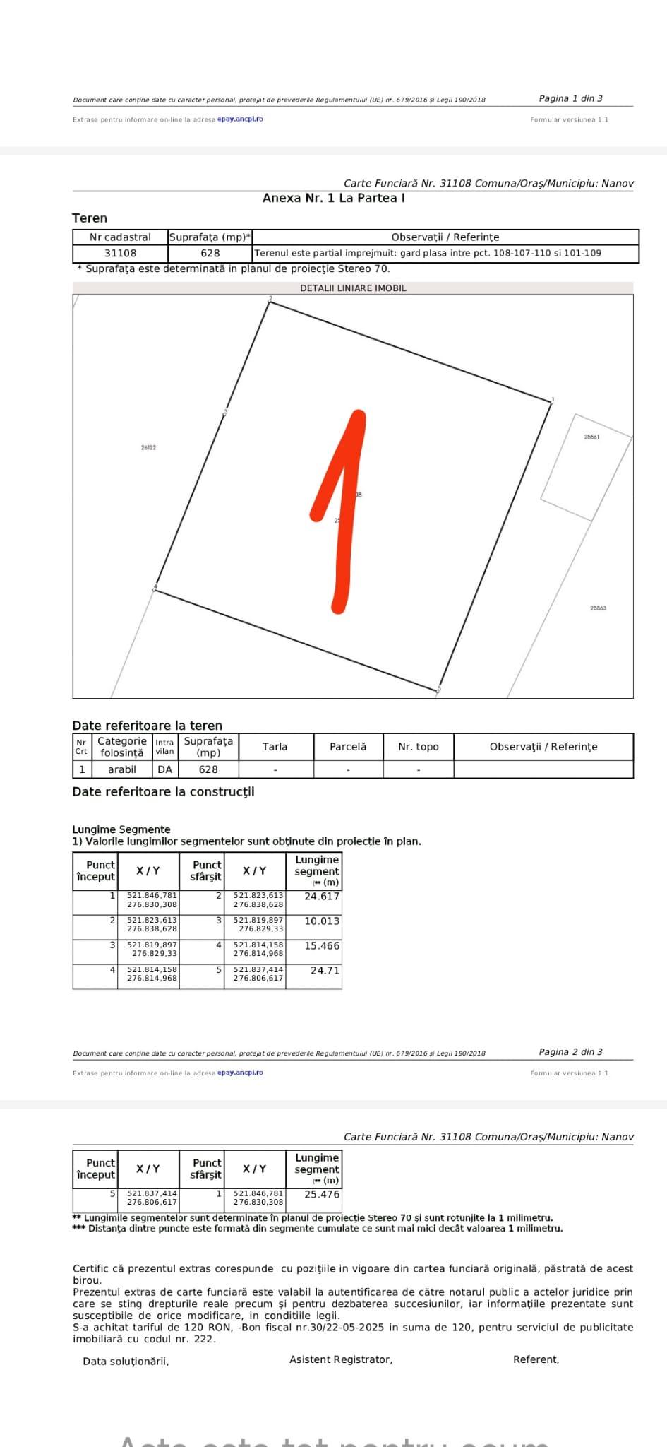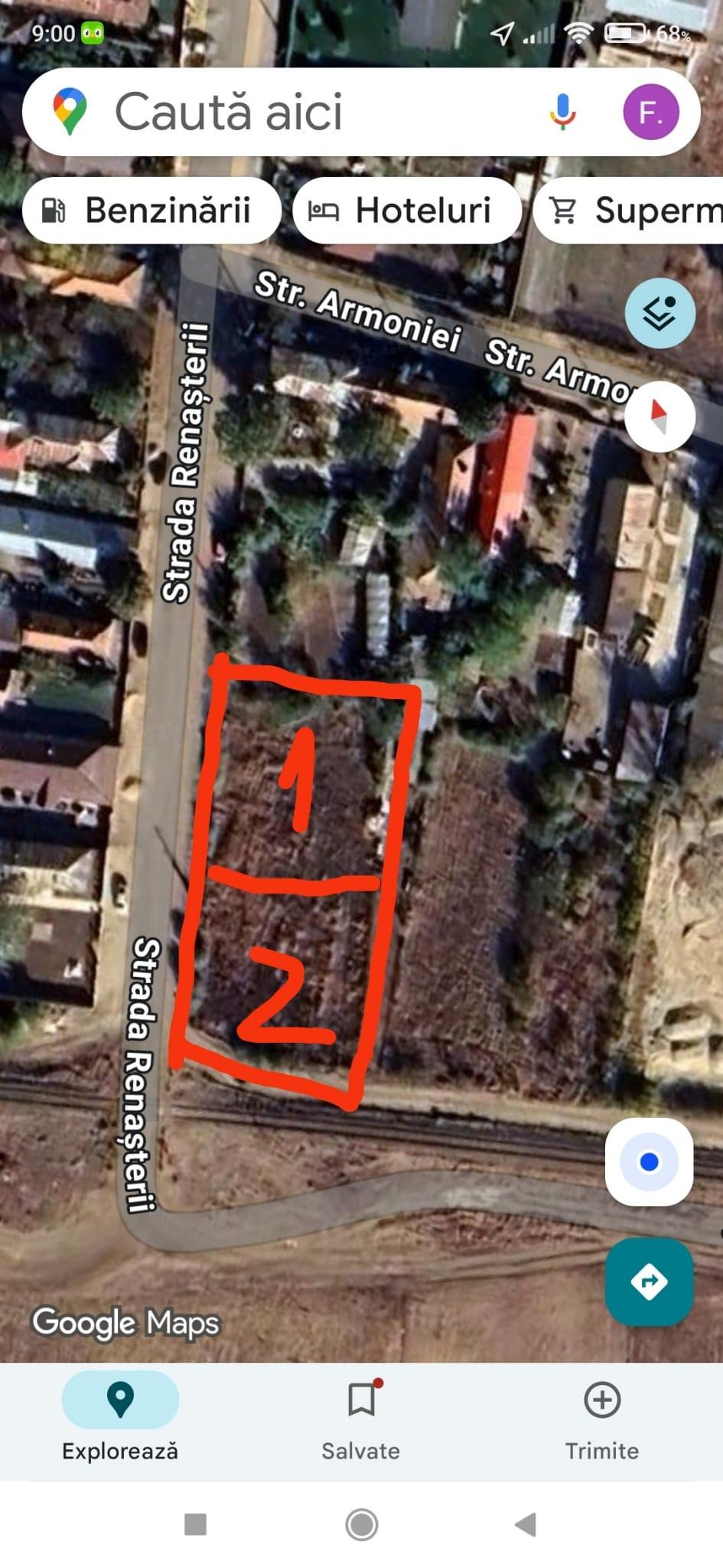 Vând un teren intravilan cu suprafața de 1256mp,dezmembrat in doua loturi egale,fiecare a câte 628 mp(cu numere cadastrale și intabulare individuale!) situat pe strada Renașterii. Este îngrădit total cu sârmă,drept,in zona neinundabila(apa pentru un puț este la cca 12m adâncime!)strada este asfaltată, apa curenta de la rețea+gura canalizare+stâlp curent (la un metru langa gard!)proiect gaze aprobat.Loturile sunt aproape pătrate,deschidere peste 25 m pentru fiecare,dimensiunile exacte se pot observa in pozele atașate,iar lotul 2 are ieșire pe două laturi!